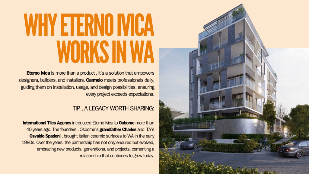 Since 1975, Osborne Ceramic Centre has been WA’s trusted destination for wall and floor tiles. From polished porcelain to pool-safe mosaics, Osborne has built a reputation for delivering premium products with a friendly, professional touch. Their team advises clients on colour coordination, offers exclusive European tiles, and provides thousands of design options to meet any vision or budget.